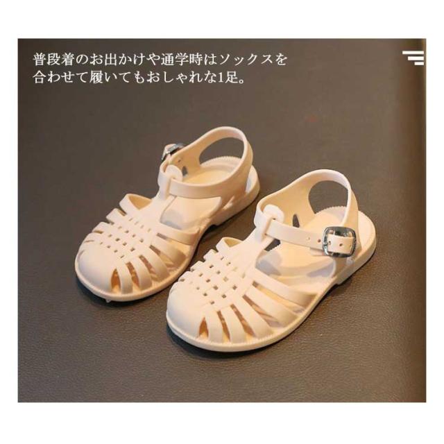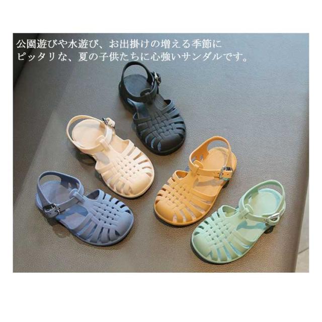 | 子供用ラバーサンダル。 つま先がしっかりカバーされているデザインはサンダルを履きなれない小さなお子様にも安心です。 スナップボタン付きので、小さなお子様でも着脱がしやすい。ストラップホールはいくつかありますので、ピッタリフィットするように調節可能。 公園遊びや水遊び、お出掛けの増える季節にピッタリな、夏の子供たちに心強いサンダルです。 普段着のお出かけや通学時はソックスを合わせて履いてもおしゃれな1足。 | |