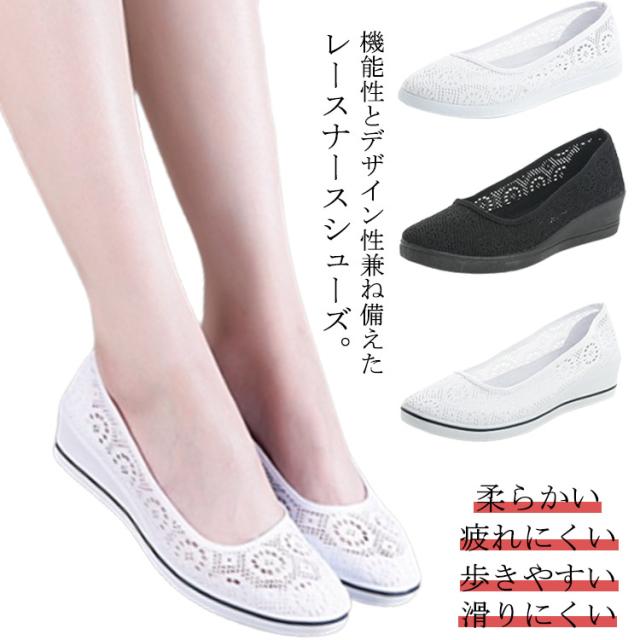 きれいめ ナースシューズ レース パンプス スリッポン ウェッジソール 立ち仕事 看護婦 シューズ メッシュ 靴 蒸れない 看護師 夏 涼しい レディース サンダル 仕事現場 スリッポン 脱げない 軽量