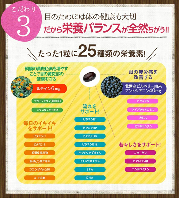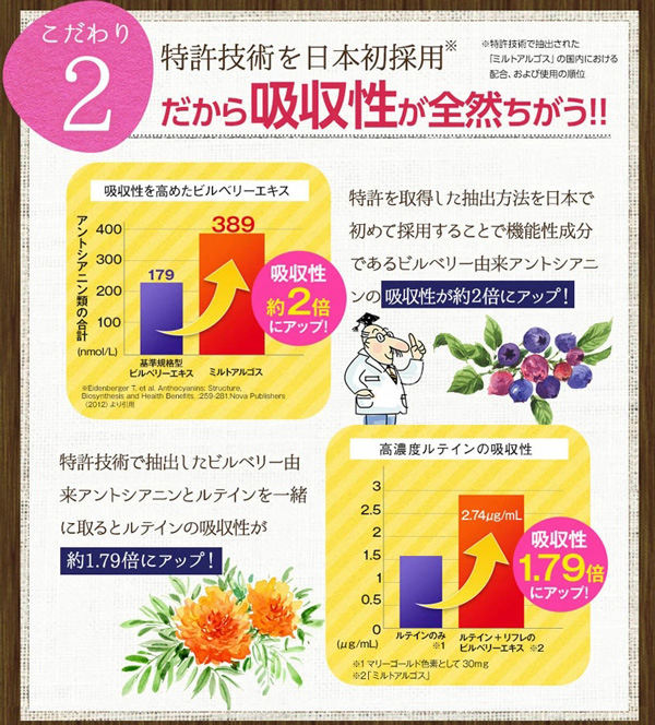 ○こだわりがちりばめられた「ブルベリー&ルテイン」