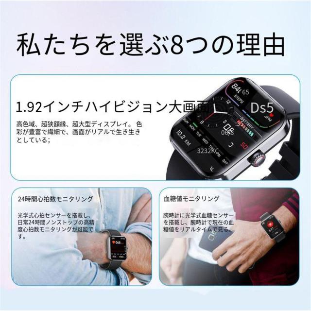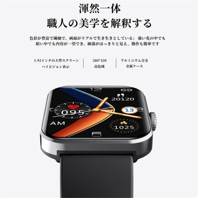 【2023最新型】スマートウォッチ 健康管理 通話機能 体温測定 スマートウォッチ 24時間健康管理 温度監視 歩数計 IP67防水 1.92インチ大画面 腕時計