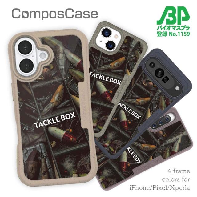 コンポスケース & 着せ替え デザインシート セット Google Pixel9a Pixel9 Pro XL Pixel8a Pixel8 Pro Xperia 10 V ケース 背面 生分解性 4色 釣り 魚 ルアー タックルボックス
