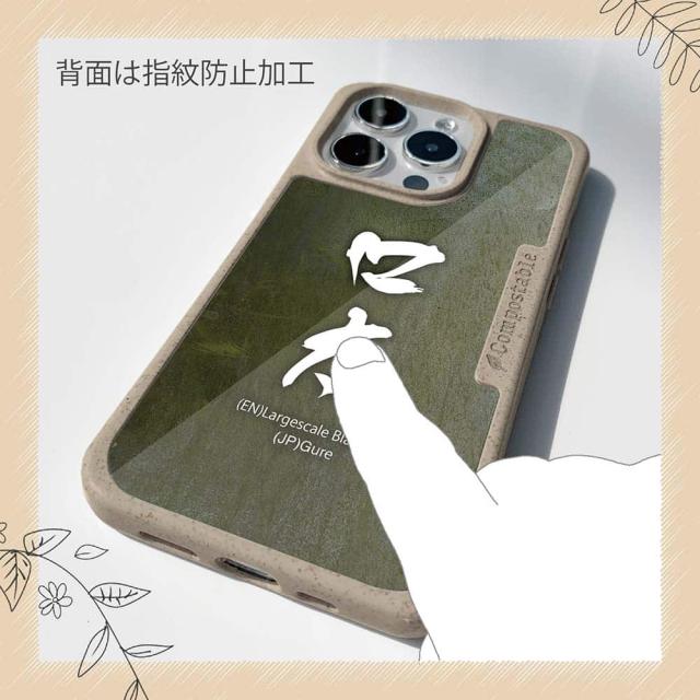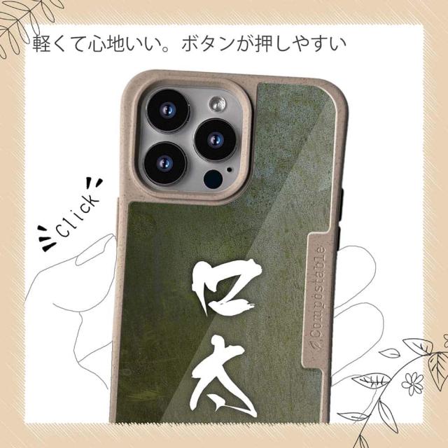 | 注意事項 | コンポスケースは、フレーム部分に「生分解性プラスチック」という環境に優しい素材を使用しております。そのため擦ったり、ぶつけたりする衝撃を与えると脆い部分もあります。耐衝撃ケースではないことをご了承ください。 Qi充電やMagSafe充電にも対応していますが、装着していない時に比べると充電速度は落ちます。 |