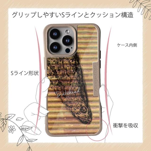 | 商品説明 | コンポスケースは、環境負荷低減を目的に開発されたスマホケース。従来のスマホケースと比べ、CO2排出量を50%削減できます。しかも、循環型社会に対応した素材を使ったケースです。 フレームカラーが4色からお選び頂けます。※コンポスケースとデザインシートが1つずつのセット商品となります。商品画像の15枚目と16枚目は、スマホの背景色によるサンプルです。ケース自体の背面は透明なので、スマホの背面色によってこのような色になるという例です。背景の色が選べる訳ではありませんので、予めご了承下さいませ。 ライギョは、中国から朝鮮半島、アムール川流域までのロシア沿海地方に分布するカムルチーを指す日本での呼称。空気呼吸ができるのも特徴で、外見ではわからないが、鰓に近接した頭部の腔所に「上鰓器官」と呼ばれる血管の発達した粘膜のひだを持つ。そんなライギョの鉄錆バージョン! ![]() |
