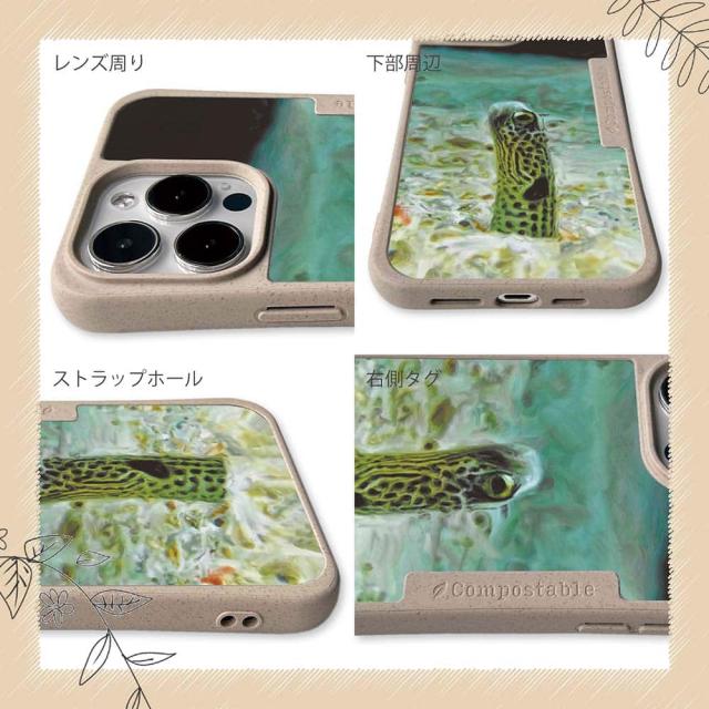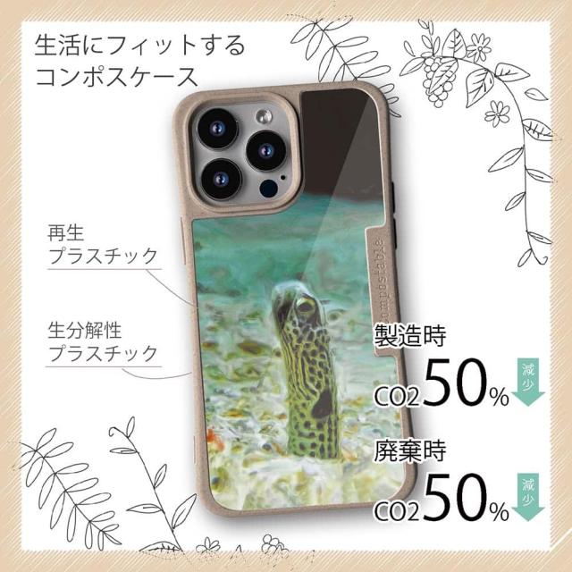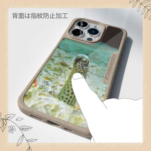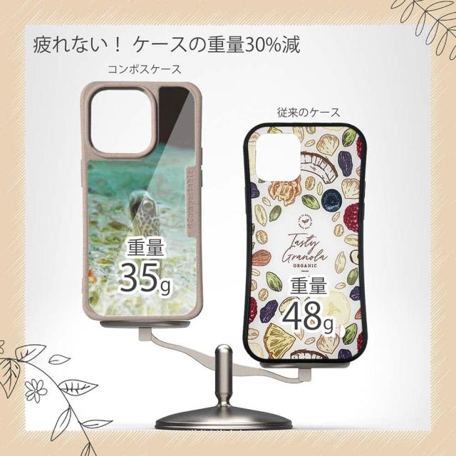 | 注意事項 | コンポスケースは、フレーム部分に「生分解性プラスチック」という環境に優しい素材を使用しております。そのため擦ったり、ぶつけたりする衝撃を与えると脆い部分もあります。耐衝撃ケースではないことをご了承ください。 Qi充電やMagSafe充電にも対応していますが、装着していない時に比べると充電速度は落ちます。 |