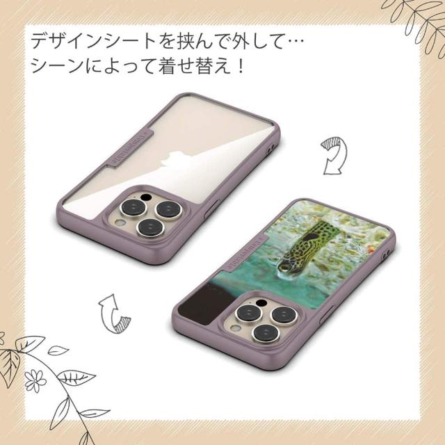 | デザインシートについて | 薄いPET素材にUV印刷を施してプリントします。ケース背面には透明の再生プラスチックが取り付けられているので、その内側にシートを入れ、スマホ本体をハメ込んで使います(背面の再生プラスチックとスマホの間にシートを挟むイメージ)。また、シート自体は着せ替えが可能です(当店にて別途、他のデザインシートを購入可能)。 |