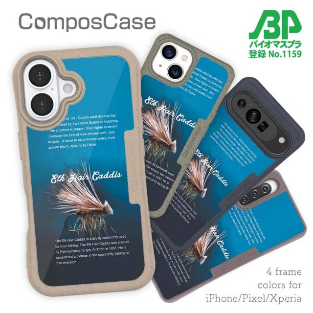 コンポスケース & 着せ替え デザインシート セット Google Pixel9a Pixel9 Pro XL Pixel8a Pixel8 Pro Xperia 10 V ケース 背面 生分解性 4色 釣り 魚 ルアー エルクヘアカディス