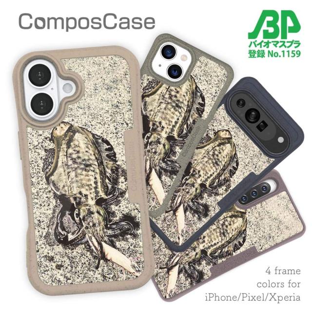 コンポスケース & 着せ替え デザインシート セット Google Pixel9a Pixel9 Pro XL Pixel8a Pixel8 Pro Xperia 10 V ケース 背面 生分解性 4色 釣り 魚 ルアー エギングでアオリイカ