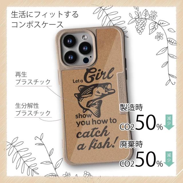 コンポスケース & 着せ替え デザインシート セット Google Pixel9a Pixel9 Pro XL Pixel8a Pixel8 Pro Xperia 10 V ケース 背面 生分解性 4色 釣り 魚 ルアー 釣りガールがどうやって釣るか見せてあげるわ