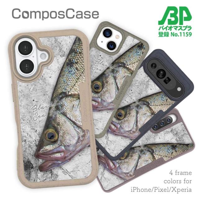 コンポスケース & 着せ替え デザインシート セット Google Pixel9a Pixel9 Pro XL Pixel8a Pixel8 Pro Xperia 10 V ケース 背面 生分解性 4色 釣り 魚 ルアー ヒラスズキの目