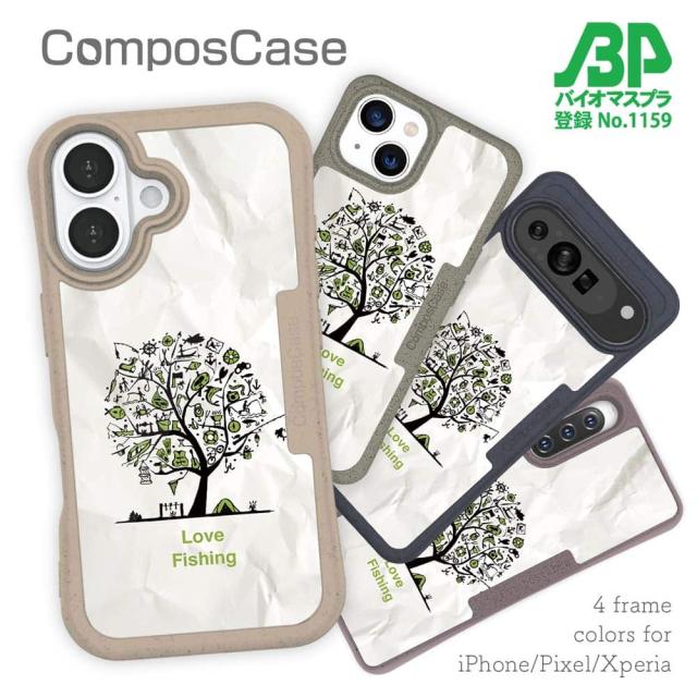 コンポスケース & 着せ替え デザインシート セット Google Pixel9a Pixel9 Pro XL Pixel8a Pixel8 Pro Xperia 10 V ケース 背面 生分解性 4色 釣り 魚 ルアー Love Fishing Part2