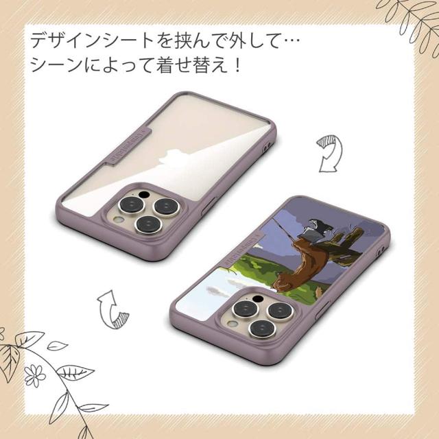 | ケースについて | 背面の内側に入れ込むデザインシートで、シーンに合わせて着せ替え可能。また、グリップしやすいクッション構造で、本体重量は約35gと軽減化を実現。さらにSライン形状で、究極に押しやすいボタン設計(切り込みが入ることで押し込む力を軽減)、背面のカメラ・レンズを保護する高さ設計となっております。生分解性プラスチック素材ながらも着脱もしやすく、割れない・指紋防止加工を施しています。 |