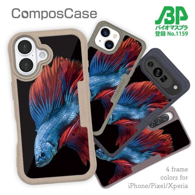 コンポスケース & 着せ替え デザインシート セット Google Pixel9a Pixel9 Pro XL Pixel8a Pixel8 Pro Xperia 10 V ケース 背面 生分解性 4色 釣り 魚 ルアー トラディショナル・ベタ ブルー