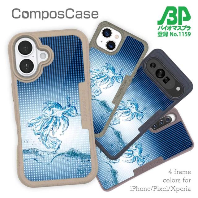 コンポスケース & 着せ替え デザインシート セット Google Pixel9a Pixel9 Pro XL Pixel8a Pixel8 Pro Xperia 10 V ケース 背面 生分解性 4色 釣り 魚 ルアー 水の金魚