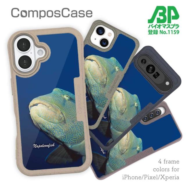 コンポスケース & 着せ替え デザインシート セット Google Pixel9a Pixel9 Pro XL Pixel8a Pixel8 Pro Xperia 10 V ケース 背面 生分解性 4色 釣り 魚 ルアー 水中 ナポレオンフィッシュ