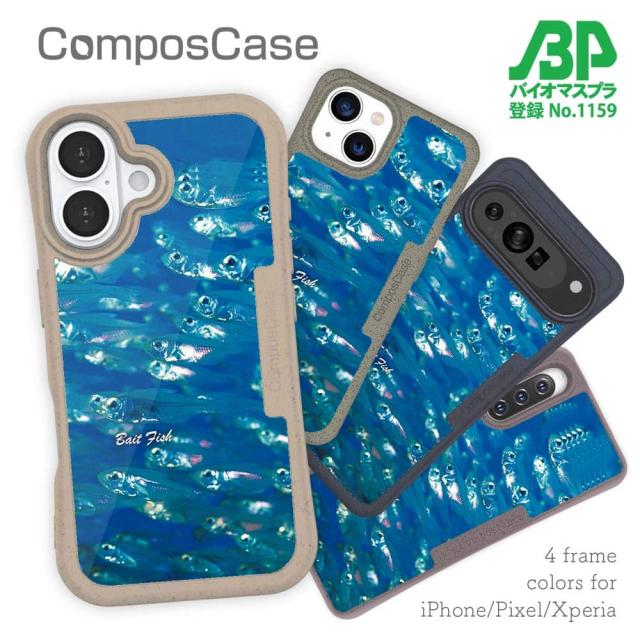コンポスケース & 着せ替え デザインシート セット Google Pixel9a Pixel9 Pro XL Pixel8a Pixel8 Pro Xperia 10 V ケース 背面 生分解性 4色 釣り 魚 ルアー 水中 ベイトフィッシュ