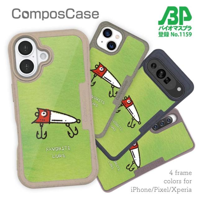 コンポスケース & 着せ替え デザインシート セット Google Pixel9a Pixel9 Pro XL Pixel8a Pixel8 Pro Xperia 10 V ケース 背面 生分解性 4色 釣り 魚 ルアー お気に入りのルアー