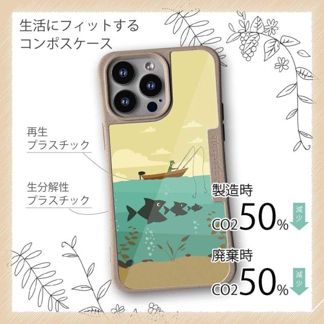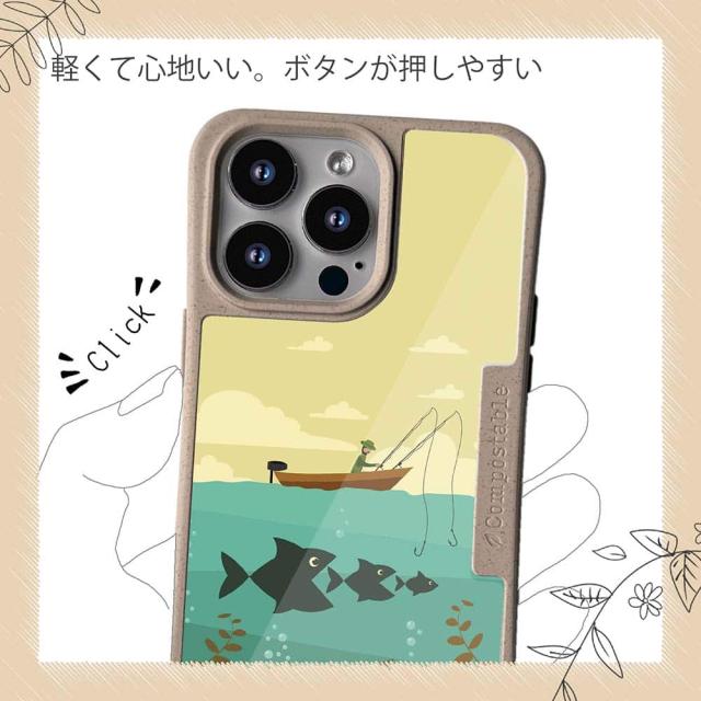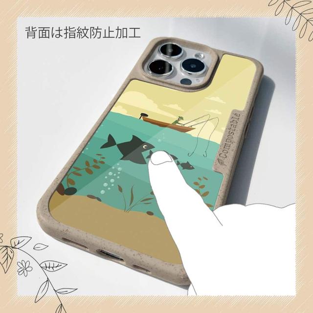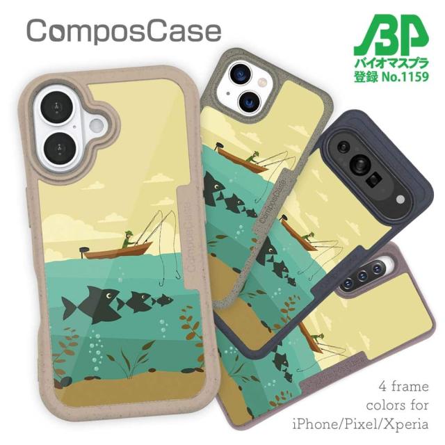 コンポスケース & 着せ替え デザインシート セット Google Pixel9a Pixel9 Pro XL Pixel8a Pixel8 Pro Xperia 10 V ケース 背面 生分解性 4色 釣り 魚 ルアー Fishing on the boat イラスト
