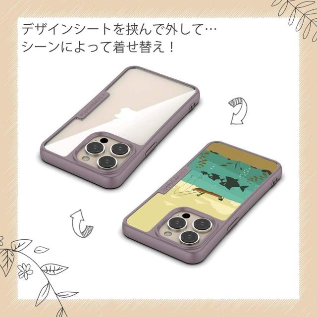 | ケースについて | 背面の内側に入れ込むデザインシートで、シーンに合わせて着せ替え可能。また、グリップしやすいクッション構造で、本体重量は約35gと軽減化を実現。さらにSライン形状で、究極に押しやすいボタン設計(切り込みが入ることで押し込む力を軽減)、背面のカメラ・レンズを保護する高さ設計となっております。生分解性プラスチック素材ながらも着脱もしやすく、割れない・指紋防止加工を施しています。 |