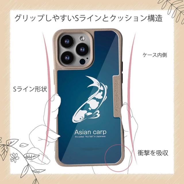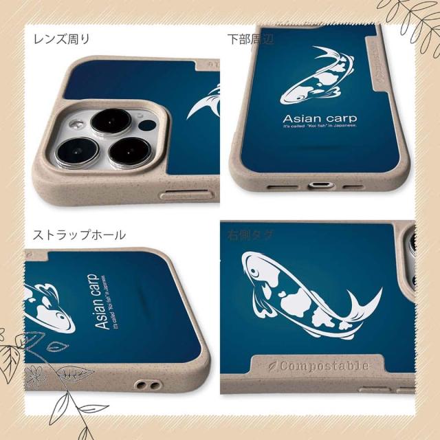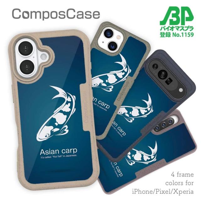 コンポスケース & 着せ替え デザインシート セット Google Pixel9a Pixel9 Pro XL Pixel8a Pixel8 Pro Xperia 10 V ケース 背面 生分解性 4色 釣り 魚 ルアー 錦鯉(アジアン カープ) ブルー