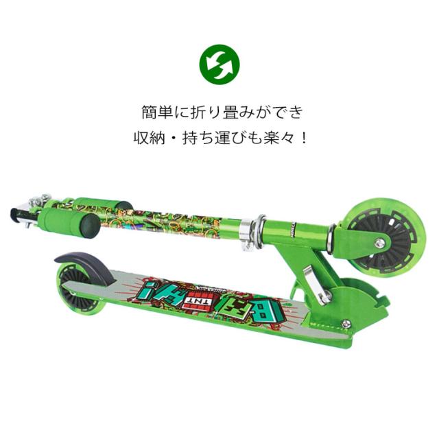 ボーイズ ガールズ 男の子 女の子 インライン スクーター キッズ 子供 キックスクーター キックボード キックスケーター コンパクト 高さ調節 公園 プレゼント 誕生日 クリスマス 乗用玩具 おもちゃ マイクラ マインクラフト