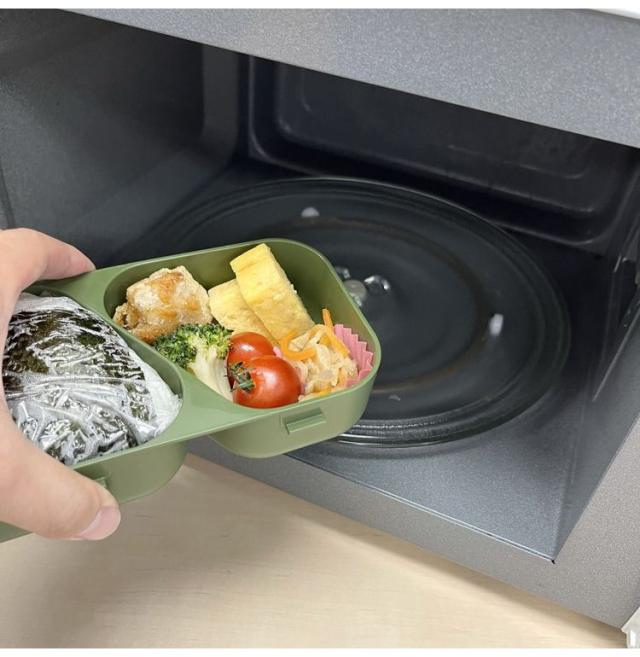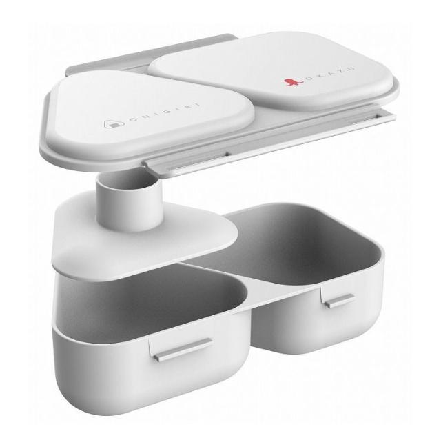 ●にぎらず作れて、おかずも入るおにぎりケース。簡単・時短おにぎりランチ●作れるおにぎり1個あたり、コンビニおにぎりの約1.5倍!●今日はおにぎり1つとおかず、今日はおにぎり2つ、など自由な組み合わせができます。●抗菌剤添加。銀イオンの抗菌力が樹脂表面の細菌の増殖を抑制します。●トウモロコシ由来のバイオマス原料を約10%使用しており、CO2排出量の削減に貢献しています。