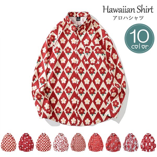 【レビュー投稿で+5%還元】アロハシャツ シャツ メンズ レディース 開襟シャツ 夏物 ハワイアン アロハシャツ 長袖 大きいサイズ ヴィンテージ風 シンプルデザイン 花柄 開襟 半袖 オープンカラー カジュアル ストリートリゾート レッド 赤 M L XL 2XL dk058x1