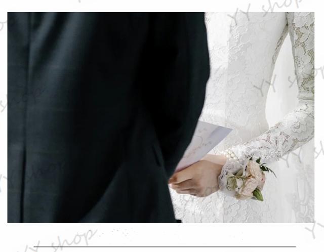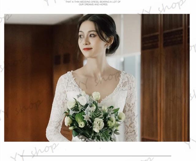高級レース マーメイドライン ウェディングドレス トレーン ロングドレス Vネック 長袖 白 結婚式 舞台 撮影 発表会 イベント H062