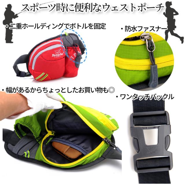 ウエストポーチ ランニング ポーチ ドリンク ホルダー 防水 ファスナー スポーツ ウェスト バッグ ウォーキング ジョギング ショルダーバッグ 肩掛け 釣り フィッシング アウトドア 野外 フェス 男女 兼用 メンズ レディース RUNDPO 送料無料