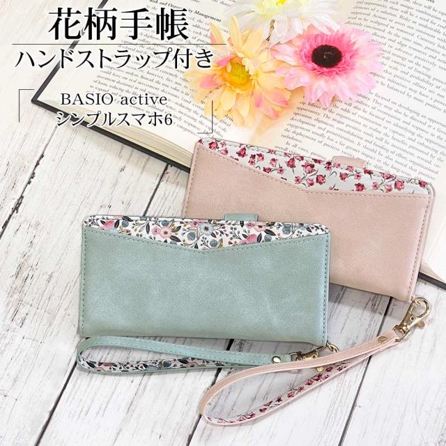 【ポスト投函不可】BASIO active SHG09 シンプルスマホ6 ケース カバー 手帳型 カード入れ スタンド機能 スウェード調 花柄 かわいい 大人 レディース ハンドストラップ付き マグネット式 ベイシオ アクティブ ラスタバナナ 7511BSACBO 7512BSACBO