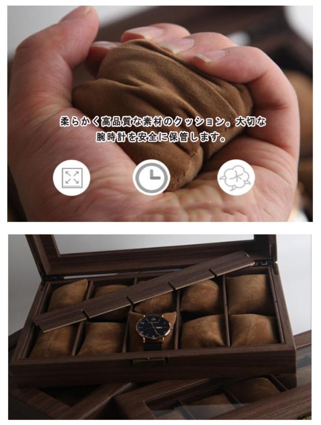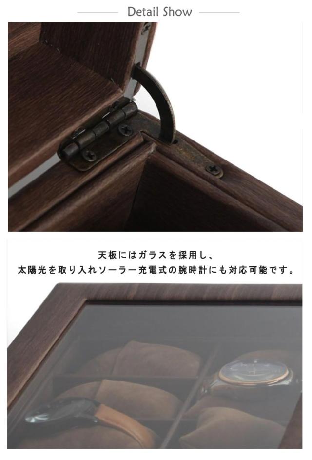 | 高級腕時計を映えさえる本物志向の収納ケース 上品でシックな雰囲気が演出できる木目革を使われています 最大12本の腕時計を収納でき、おしゃれな空間を演出します 柔らかく高品質な素材のクッション。大切な腕時計を安全に保管します。 天板にはガラスを採用し、太陽光を取り入れソーラー充電式の腕時計にも対応可能です。 金属製ヒンジで、壊れにくく、耐久性に優れています。ケースの魅力を引き立てるこだわりの金属製ロックは、開閉しやすく、時計を安全に保管します | |