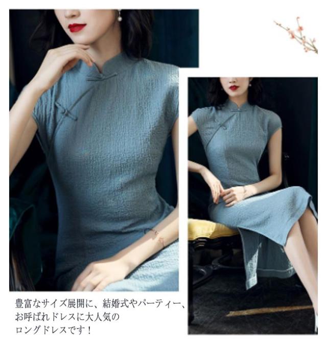 チャイナドレス ロングドレス レディース チャイナ服 送料無料 半袖 ロング 綿麻 大きいサイズ セクシー 無地 演奏会 披露宴 パーティードレス 発表会 コスプレ コスチューム ハロウィン 仮装 春夏 スリット