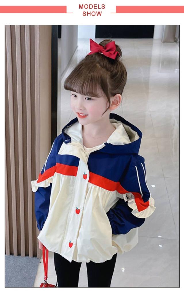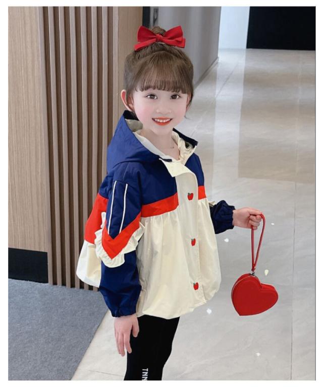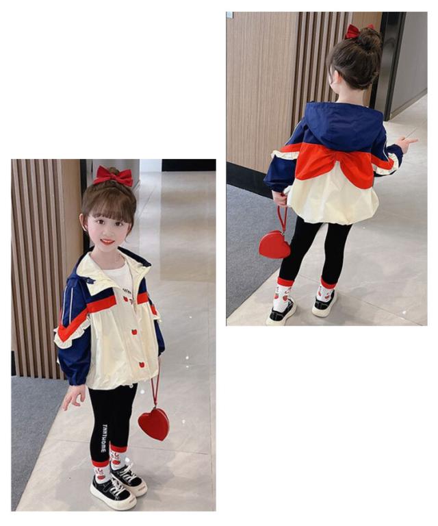 送料無料 マウンテンパーカー キッズ ベビー ジャケット 女の子 薄手 ジャンパー ウインドブレーカー 140 スプリングコート ジャージ フリル 切り替え 春 アウター フード付き 長袖 子供服 送料無料 春秋 秋服 通園 かわいい 90 100 110 120 130 140