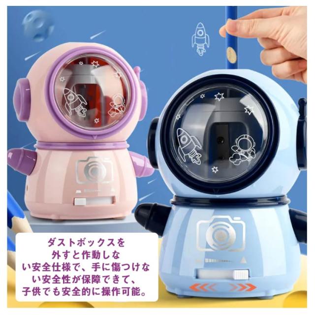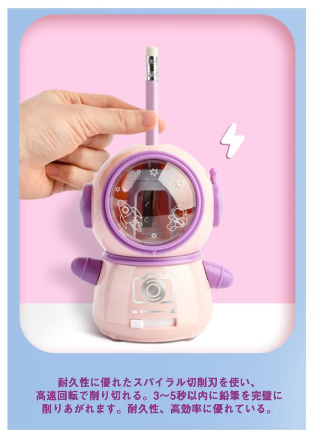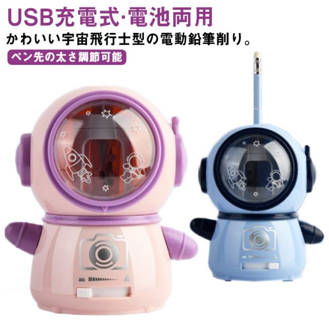 電動 鉛筆削り USB充電式 電池 両用可能 子供 電動鉛筆削り 宇宙飛行士 型 かわいい おしゃれ えんぴつ削り えんぴつけずり コンパクト 小学生 入学祝い 入学準備 リビング学習 子ども 誕生日 プレゼント ペン先太さ調節可能 【送料無料】