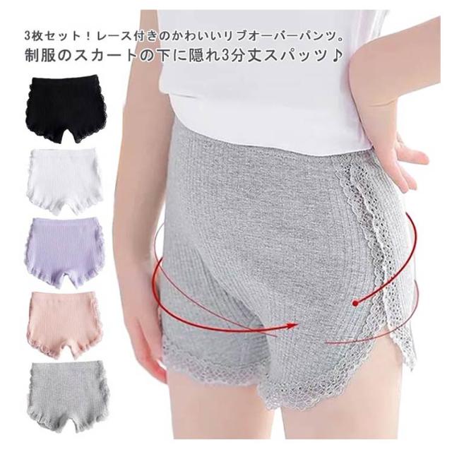 オーバーパンツ 3分丈 スパッツ 3枚組 1分丈スパッツ アンダーパンツ 綿 女の子 キッズ ジュニア リブ ショートパンツ ペチパンツ ペチコート 通学 通園 学生 制服 スカート 安全ショーツ 下着 レース フリル 裾 快適 ストレッチ 涼感 インナーパンツ 春 夏 110-160cm