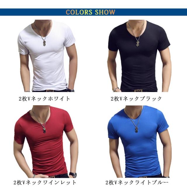 2枚セット メンズ 半袖tシャツ 半袖 Vネック Uネック 丸首 スリム 細身 肌着 インナー ヒートインナー アンダーシャツ インナーシャツ インナーtシャツ ストレッチ 無地 薄手 スポーツウェア ルームウェア 送料無料