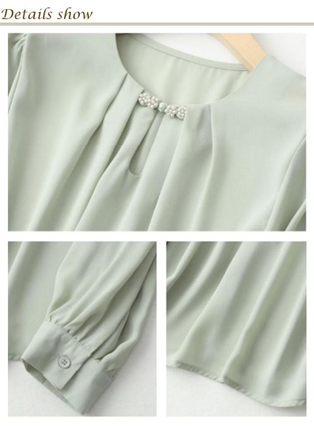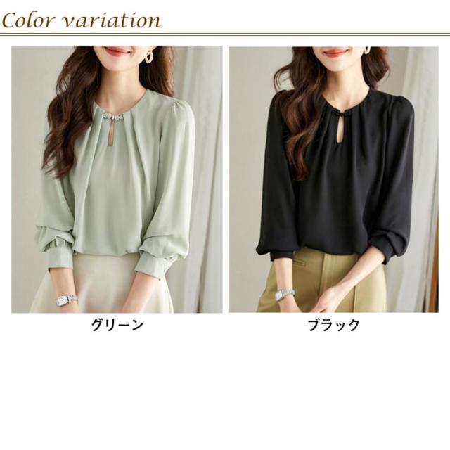 | 上品でフェミニンな装いに仕上げるシフォンブラウス。 ふんわりとしたロングスリーブだから二の腕もカバーできます。 通勤、オフィス、入学式に七五三…単品としてもスーツインナーとしても華やかに決める! 大人のオシャレ感を演出し、洗練された雰囲気に◎ 柔らかく肌触りの良い生地を使用し、着心地もバツグン。 コーデに馴染む単色デザインで着回し力もバツグン。 | |