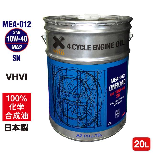 AZ バイク 4サイクル エンジンオイル 20L 【10W-40/MA2規格/100%化学合成油】 MEA-012 オンロード ONROAD 2輪エンジンオイル EG049