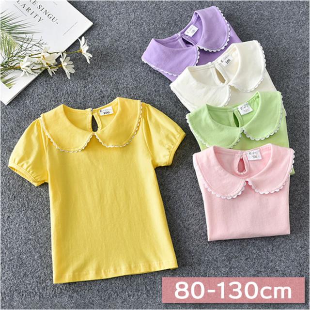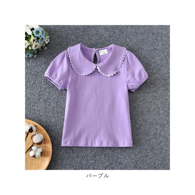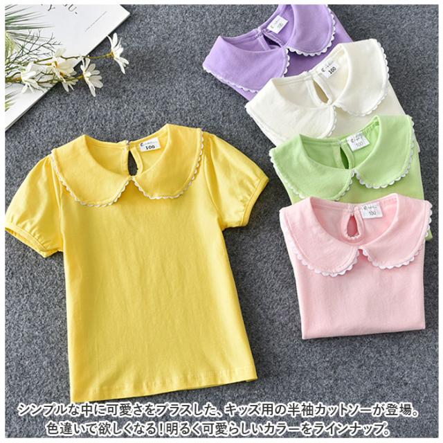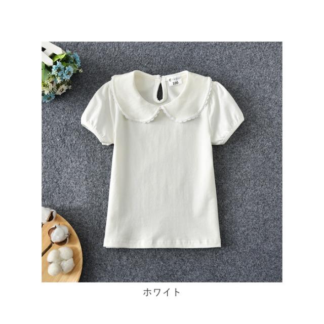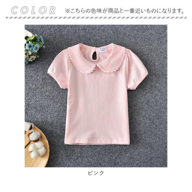 丸襟 カットソー キッズ 半袖 通販 ブラウス Tシャツ 襟 レース 無地 子供服 ガールズ ベビー 女の子 子供 子ども こども トップス おしゃれ かわいい