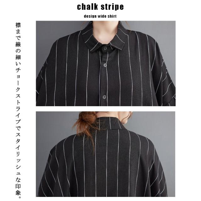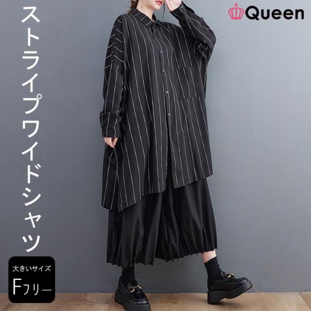 大きいサイズ レディース BIGシャツ ストライプ柄 オーバーサイズ ワイド ロング丈 春 秋 (513581)