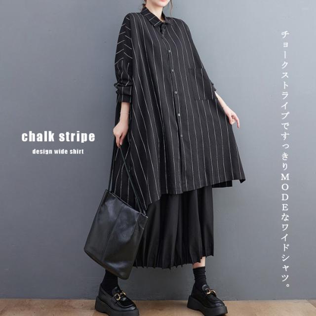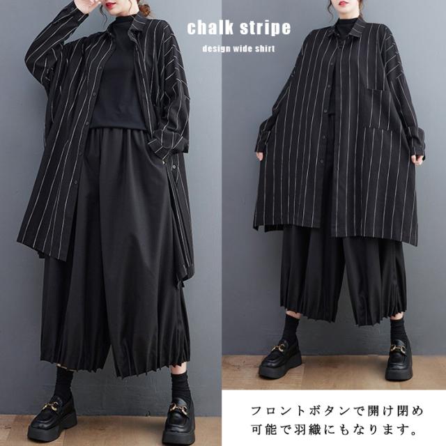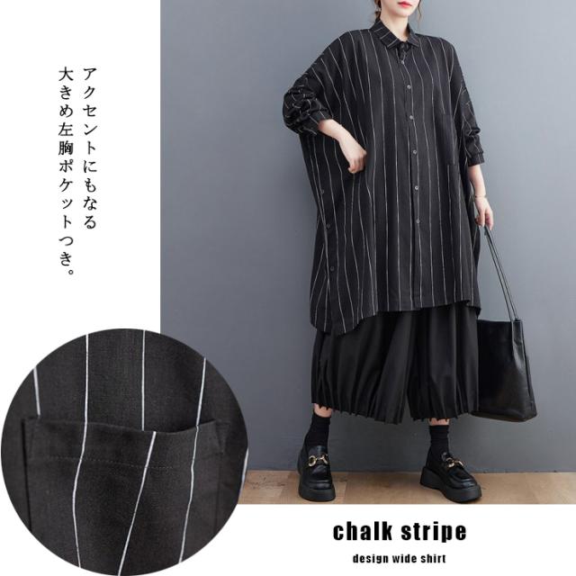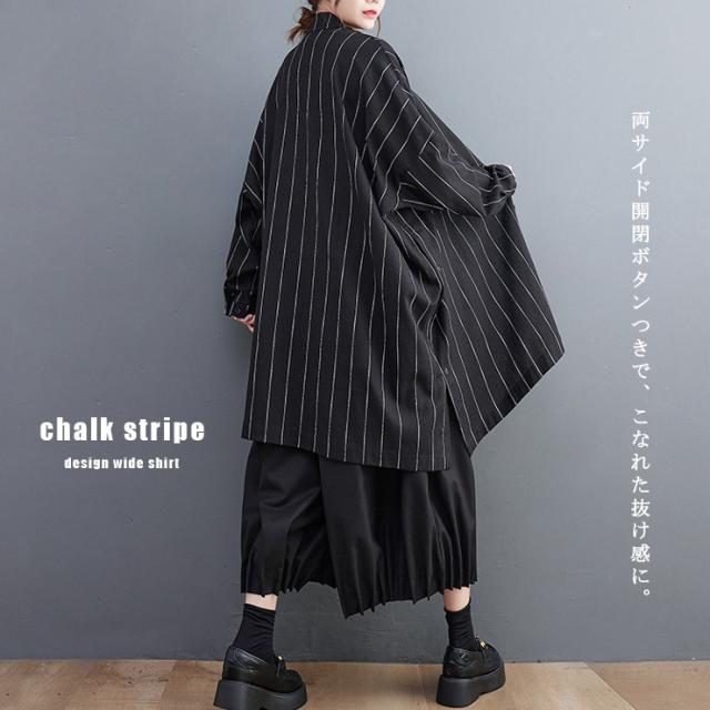 | 商品名 | チョークストライプ柄サイドボタンつきロングシャツ |