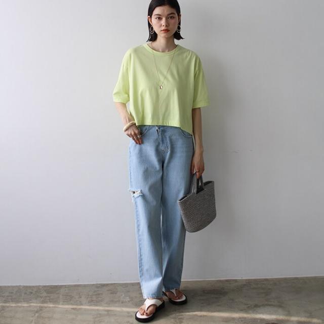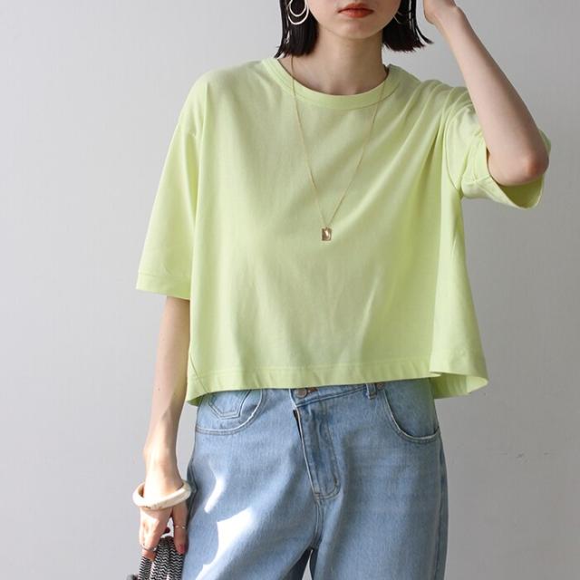 綿混素材クロップドTシャツ