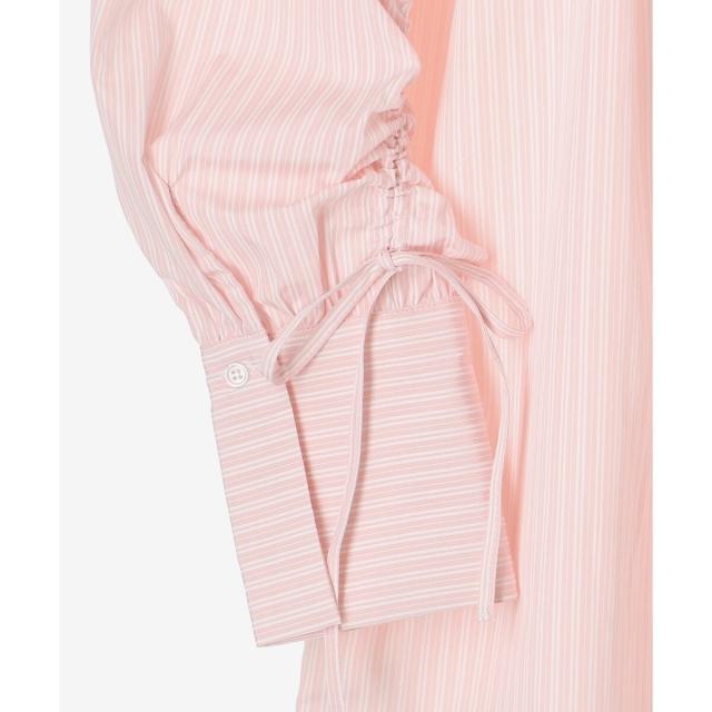 袖部分のブラウジングや、細かなギャザー入りのバックスタイルが女性らしいpointに。