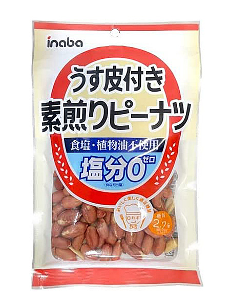 落花生本来のおいしさにこだわり、うす皮ごとお召し上がりいただけるよう香ばしく煎り上げました。食塩・植物油不使用