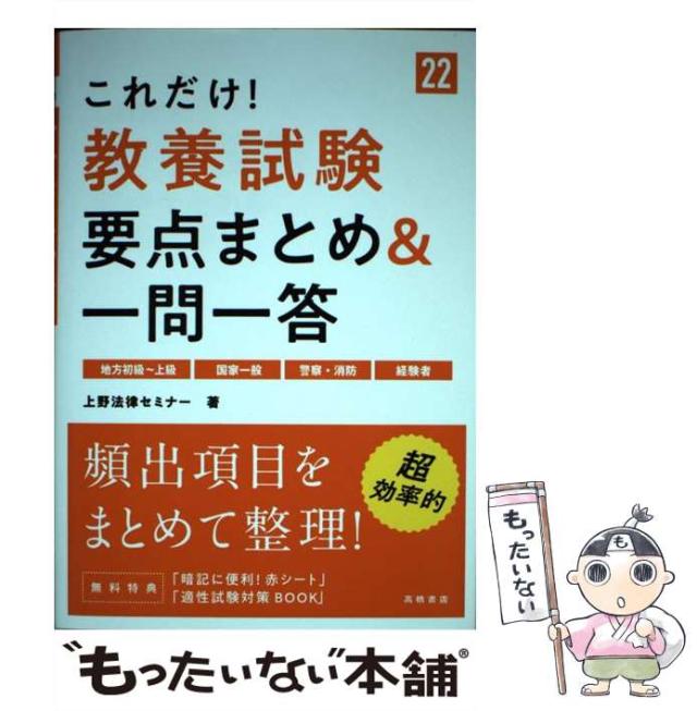 【中古】 これだけ!教養試験要点まとめ&一問一答 ’22年度版 / 上野法律セミナー / 高橋書店 [単行本(ソフトカバー)]【メール便送料無料】