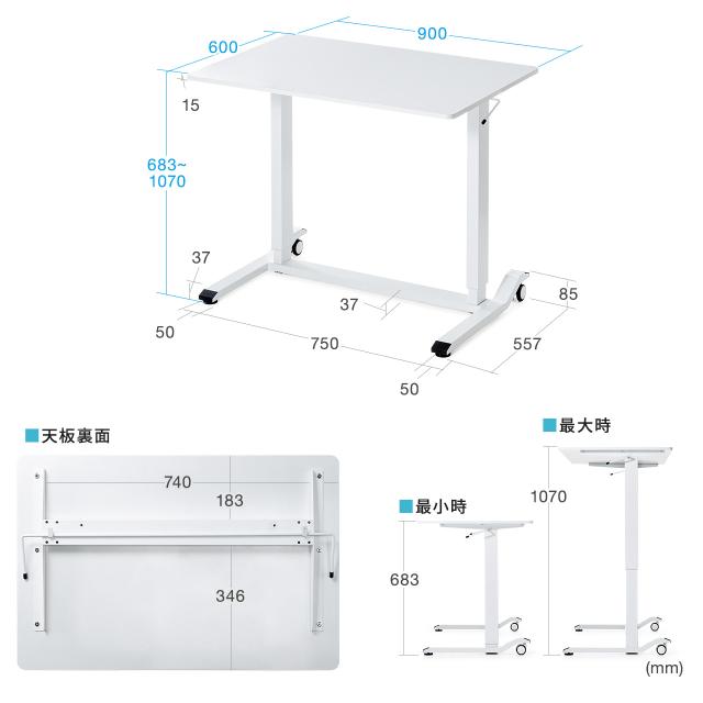 昇降デスク ガス圧昇降 スタンディングデスク軽量 作業台 座りすぎ防止 幅90cm 奥行60cm [100-ERD040]