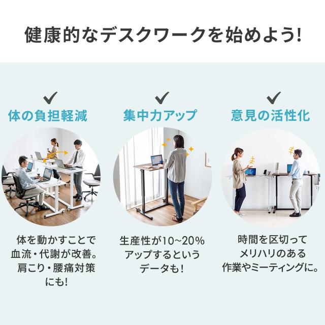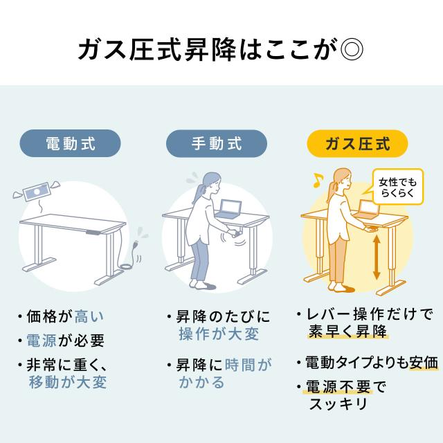 昇降デスク ガス圧昇降 スタンディングデスク軽量 作業台 座りすぎ防止 幅120cm 奥行60cm [100-ERD041]