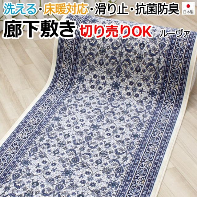 | オーダー廊下敷きカーペット 切り売り ルーヴァ(Dy) 約67cm幅×ご希望の長さにカット加工 ブルー 日本製 | ||||