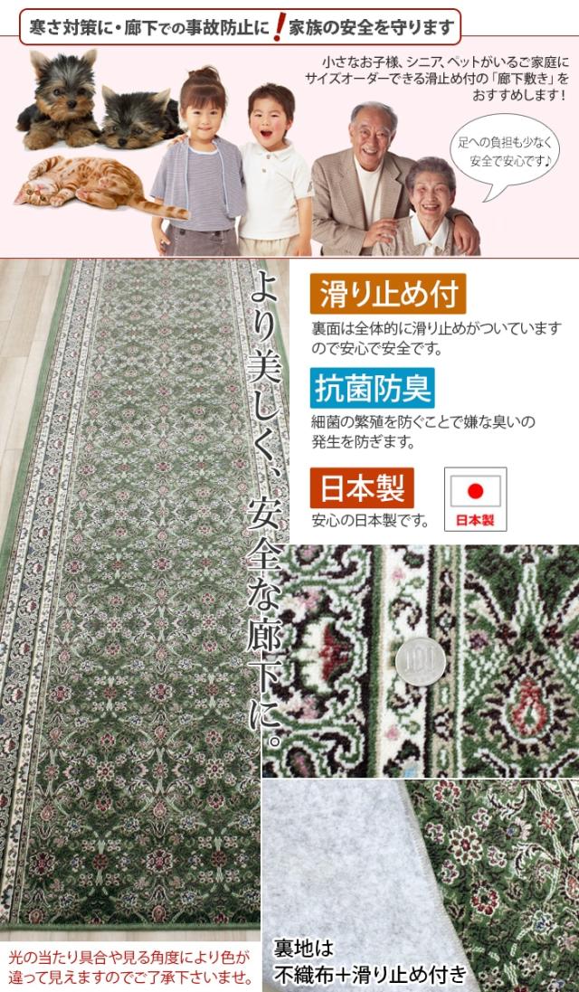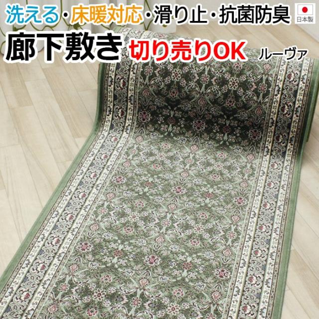 オーダー 抗菌 防臭 廊下敷きカーペット 切り売り 約67cm幅 (1mあたり) ルーヴァ (Dy) 滑り止め加工 グリーン 日本製 ヒートショック対策 引っ越し 新生活