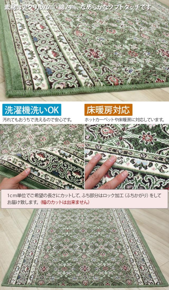 | オーダー廊下敷きカーペット 切り売り ルーヴァ(Dy) 約67cm幅×ご希望の長さにカット加工 グリーン 日本製 | ||||