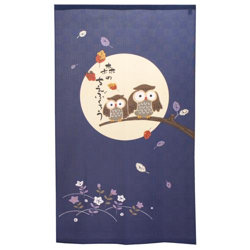 市松柄レース縁起物のれん 42207 ふくろう BL 1500